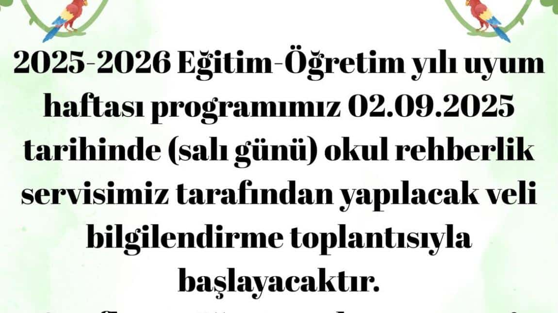 2025-2026 eğitim öğretim yılı uyum haftası programımız 02.09.2025 Salı günü